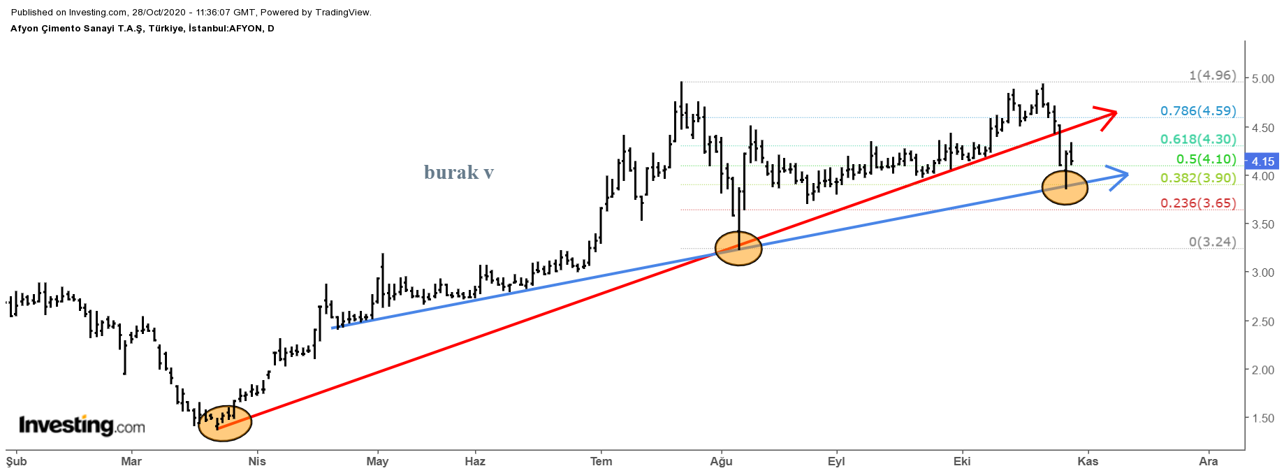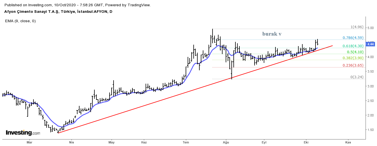 15/05/2021 yorum: Afyon hisse senedi kısa vade için 4,35 TL seviyesi düşen trend kırılım bölgessidir. Bu seviyeyi kırıp kırmayacağı takip edilebilir. aksi durumda 4.00 TL altı kısa vade stop gerektirebilir.
