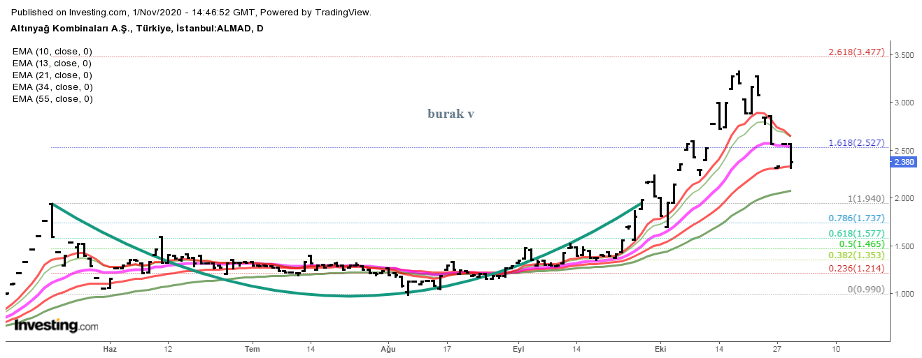 2,52 altında kapanış yapmış durumunda. 2,32 EMA desteği. Bu seviye altında kalmazsa toparlayabilir. Aksi durumda 2,08 ve 1,94destekleri gündeme gelecektir.