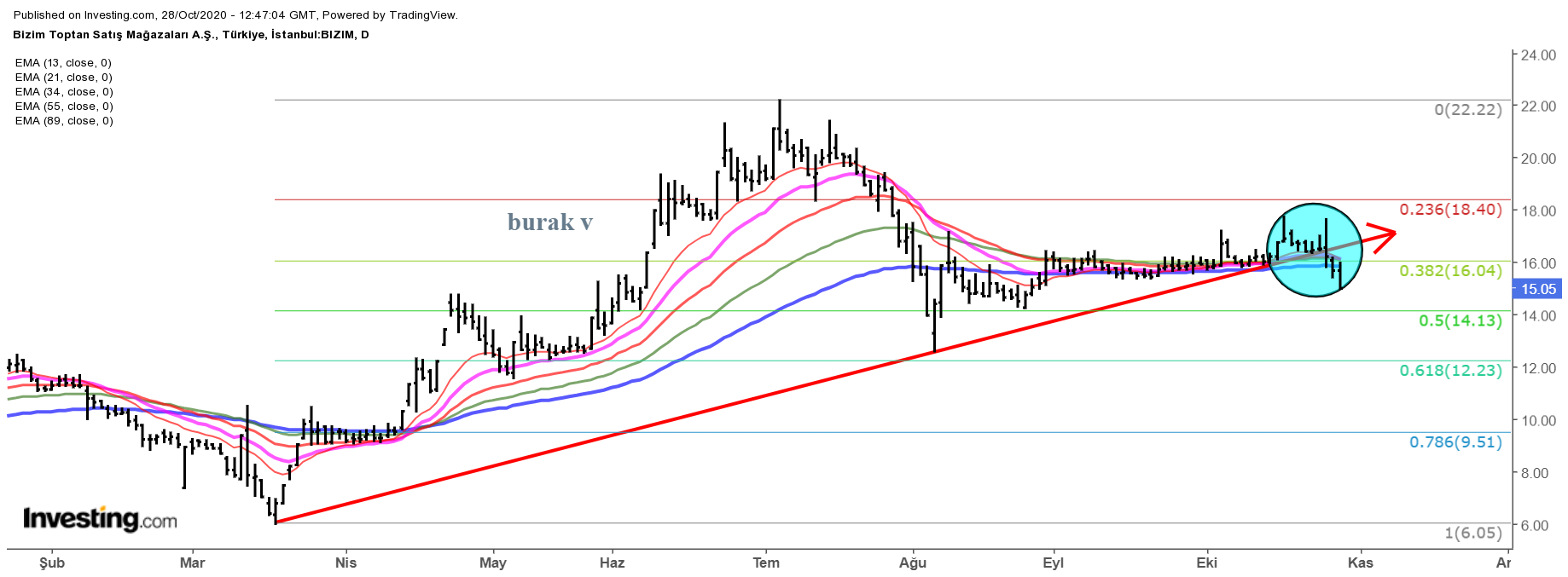 23/11/2020 yorum: 16 TL (+-20 kademe) üstü kalıcılık hisse için önemli bir FIBO alanı. Sarı renkle belirttiğim düşen trend bölgesini kırıp kıramayacağı da bu süreçte takip edilmesi gereken konulardan.