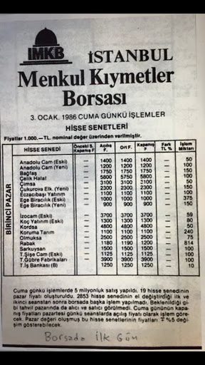 Yıl 1985 imkb borsası açıldı. Gazete ilanıyla bankalara hisselerin teslim edilmesi gerektiği yazılıyordu. Bende teslim edip 1994 4 nisan kararlarına kadar temettü aldım.