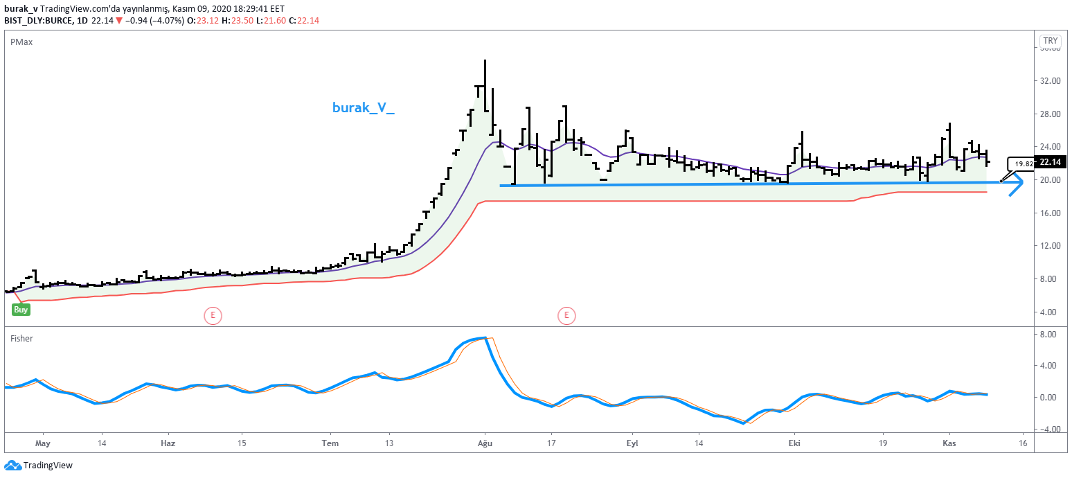 Hisse yaklaşık Ağustos ayının başından beri yatay bandda hareket ediyor. 23 TL üstü hisse için güvenli bölge fakat altında riskli. 20 TL destek bölgesi.