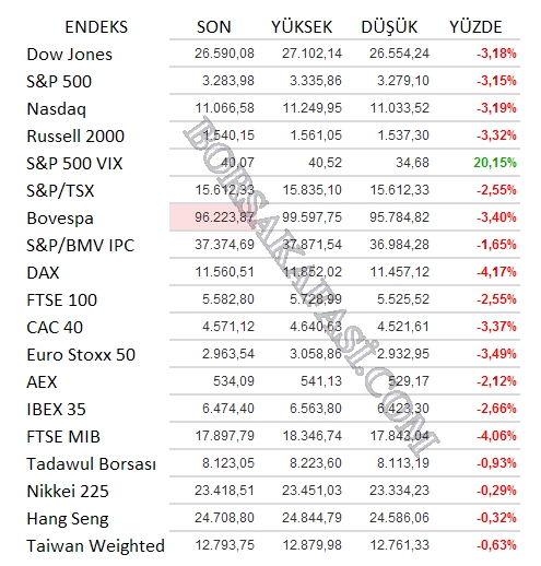 Dow Jones Endeksi, Nasdaq … gibi önemli endeksler, petrol, VIX endeksi virüsün yayılmasına ve ekonomiye ilişkin endişelerin artması ile sert hareket ediyor.