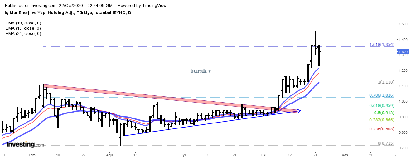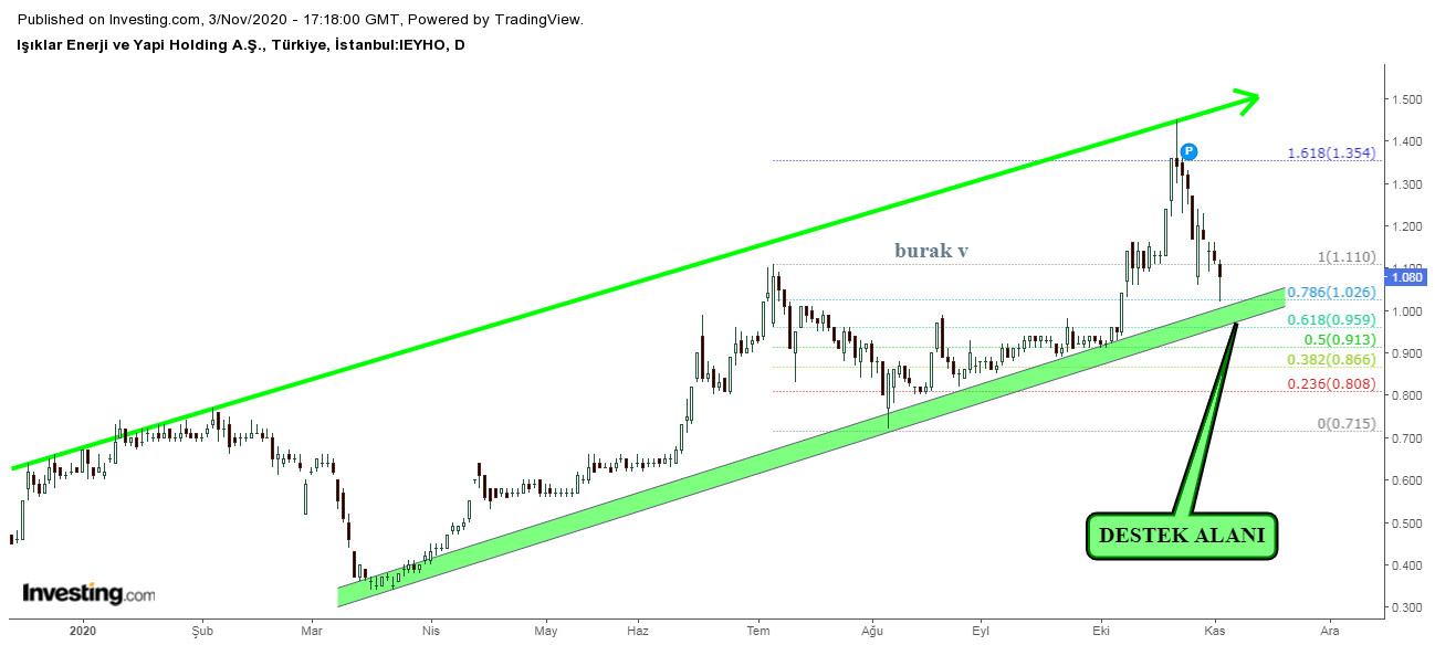 08/05/2021 yorum: 1,88 zirvesinden sert satış alan IEYHO hisse senedi, bedelli sermaye artırım sürecine de girerek düşüşünü sürdürmüş. Son aşamada dip arayışında olna IEYHO için 1,00 ve 0,92 iki ana destek bölgesi. 1,10 üstünde ise toparlanma süreci başlar.
