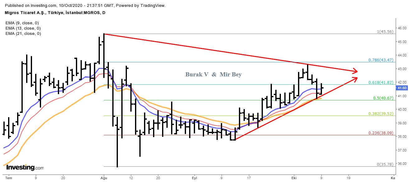 38,63 FIBO bölgesi üstünde tutunabilmiş olması önemli bir durumdu ve sonuç olarak burdan prim aldı. Bu birinci pozitif gelişme. Teknik olarak kısa vadeli çanak ve zirve hedefi takibi yapılacak: 45,50