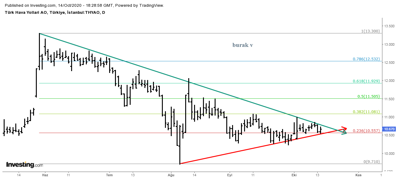 10,55 desteği ile üçgende yukarı kırılım yaşanırsa 11 TL direnci mevcut.
