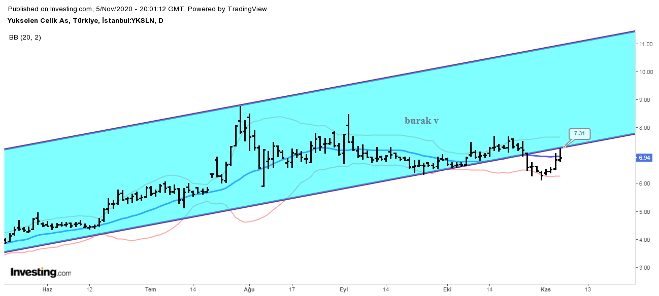 Son durumda ise borsadaki toparlanma ile birlikte hisse bu bahsettiğimiz kanal alt bandını bugun test etmiş. Sonraki günlerde bu bölgeyi yakın takip etmekte fayda var. 7,31 üstü ne atar ve tutunmayı başarırsa hisse hızlı toparlanır. Ama geçilemezse hissede aşağı yönlü baskı oluşabilir.